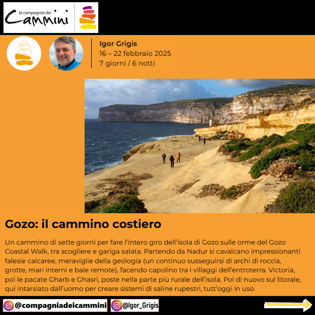 Le mie proposte di attività di più giorni sono varie, in Italia e all’estero; dalle alte vette del Parco Nazionale dello Stelvio al caldo mar Mediterraneo di Malta.